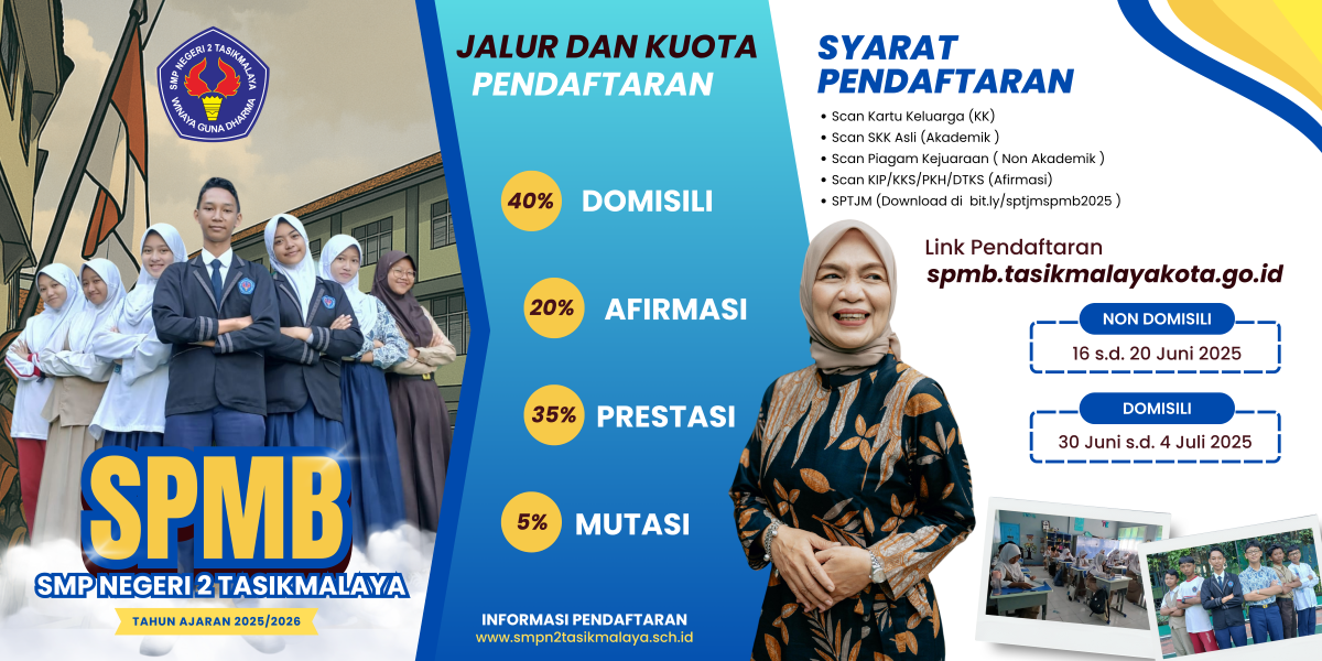 | Afirmasi | 20% | • Salinan asli KK/ Suket Domisili (yang diterbitkan 1 tahun sebelum SPMB). • Salinan asli KIP/Kartu PKH atau sejenisnya. • Scan asli Surat Keterangan Kelulusan (SKK). • Surat pernyataan ortu/wali (bit.ly/sptjmspmb2025). |